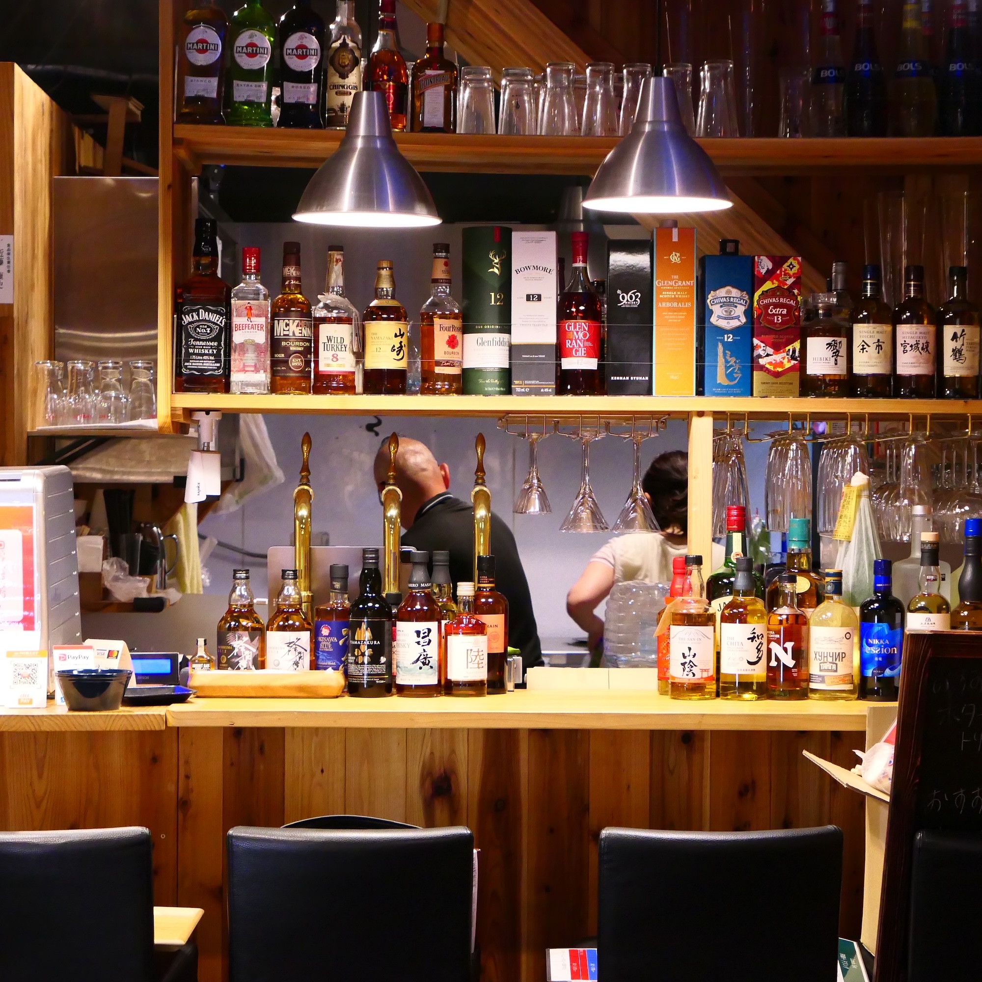 夜はオーナーが集めたウィスキーや地酒をフランクに楽しめるバーとして営業